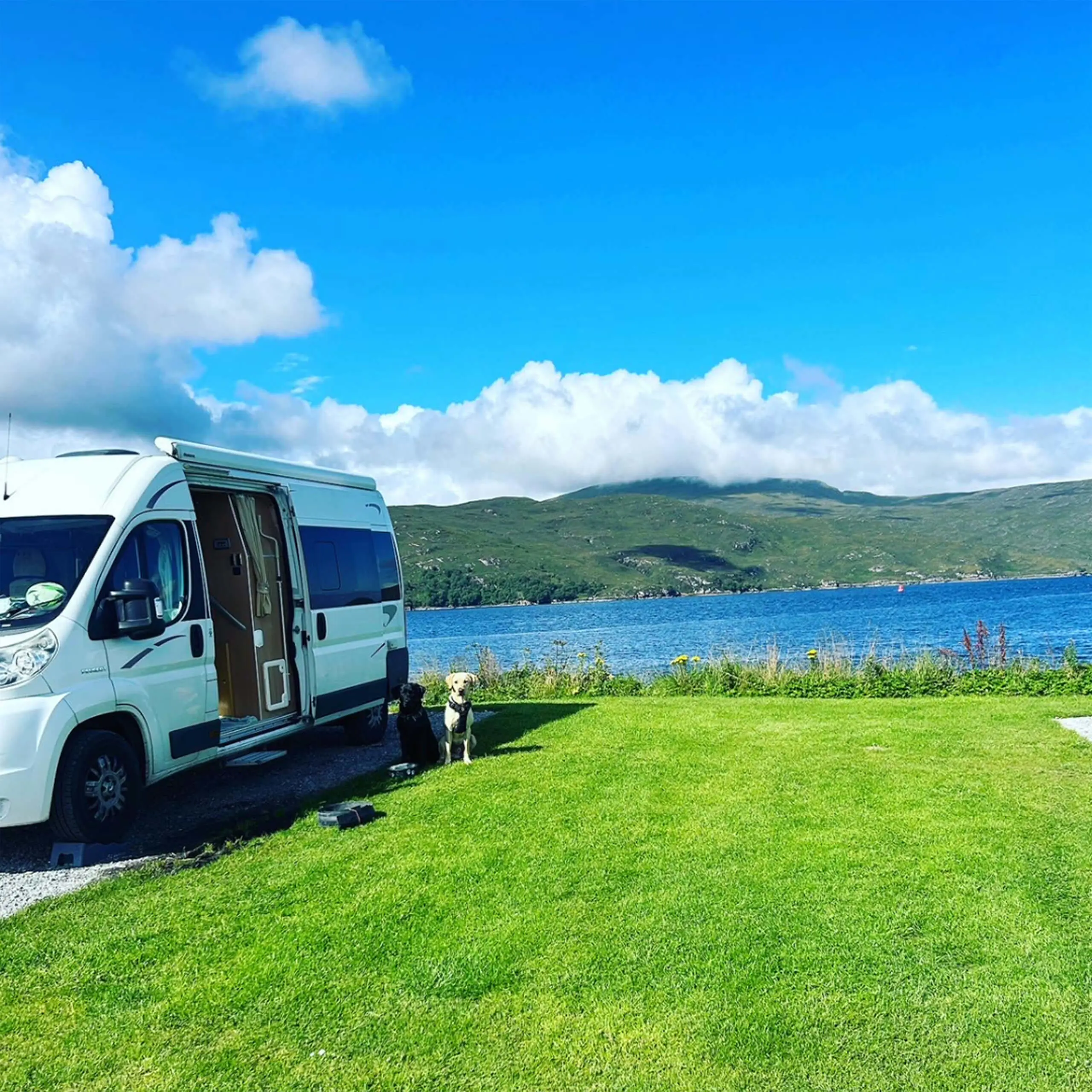 A night in the campervan, with our dogs and the fire on. Ben and I usually play a game of backgammon and just sit and enjoy the view wherever we are as the sun goes down.